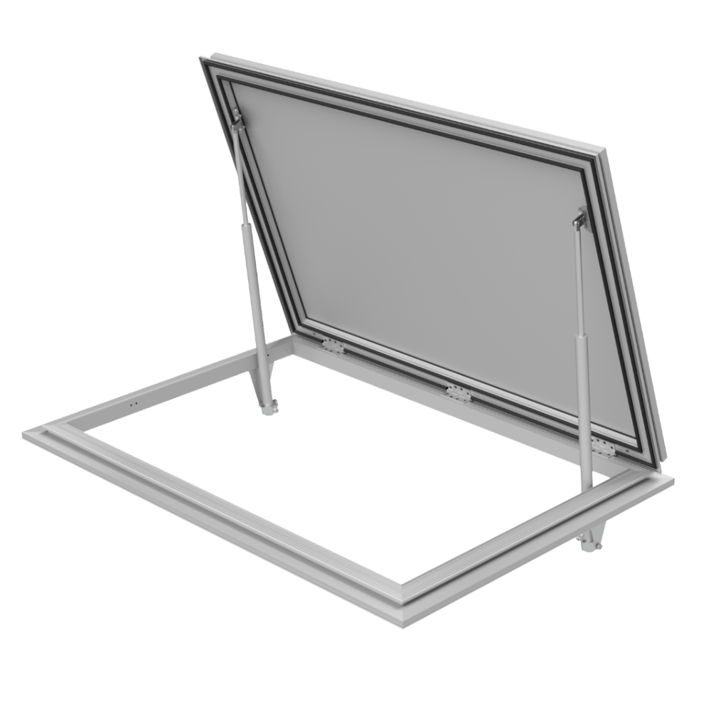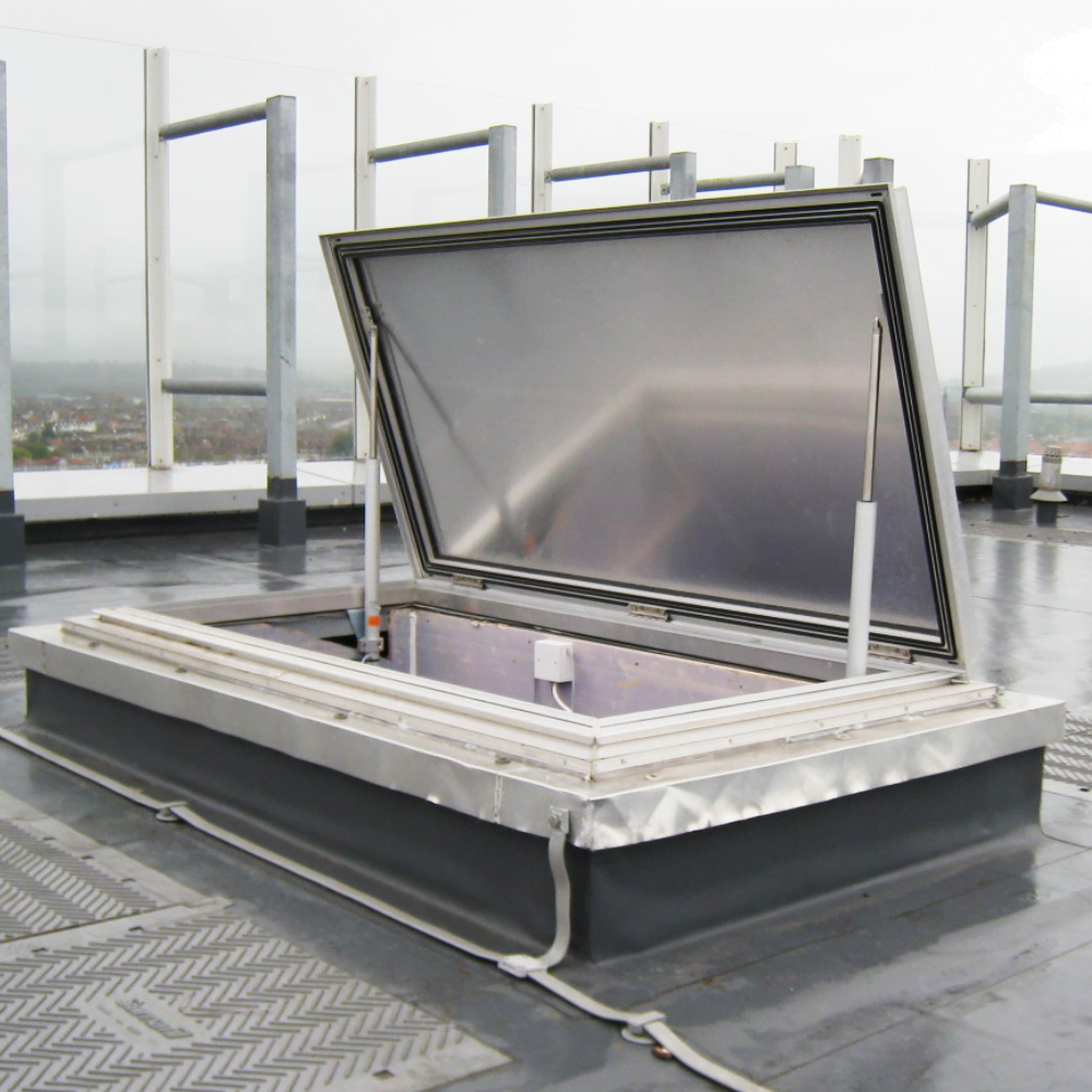 The Stirling AOV smoke vent has the increased benefit of being used as an access hatch in case the access to the roof is limited. These units are able to open up to 90° and are often installed to allow regular access to roof terraces via internal staircases, which opens up new development possibilities.