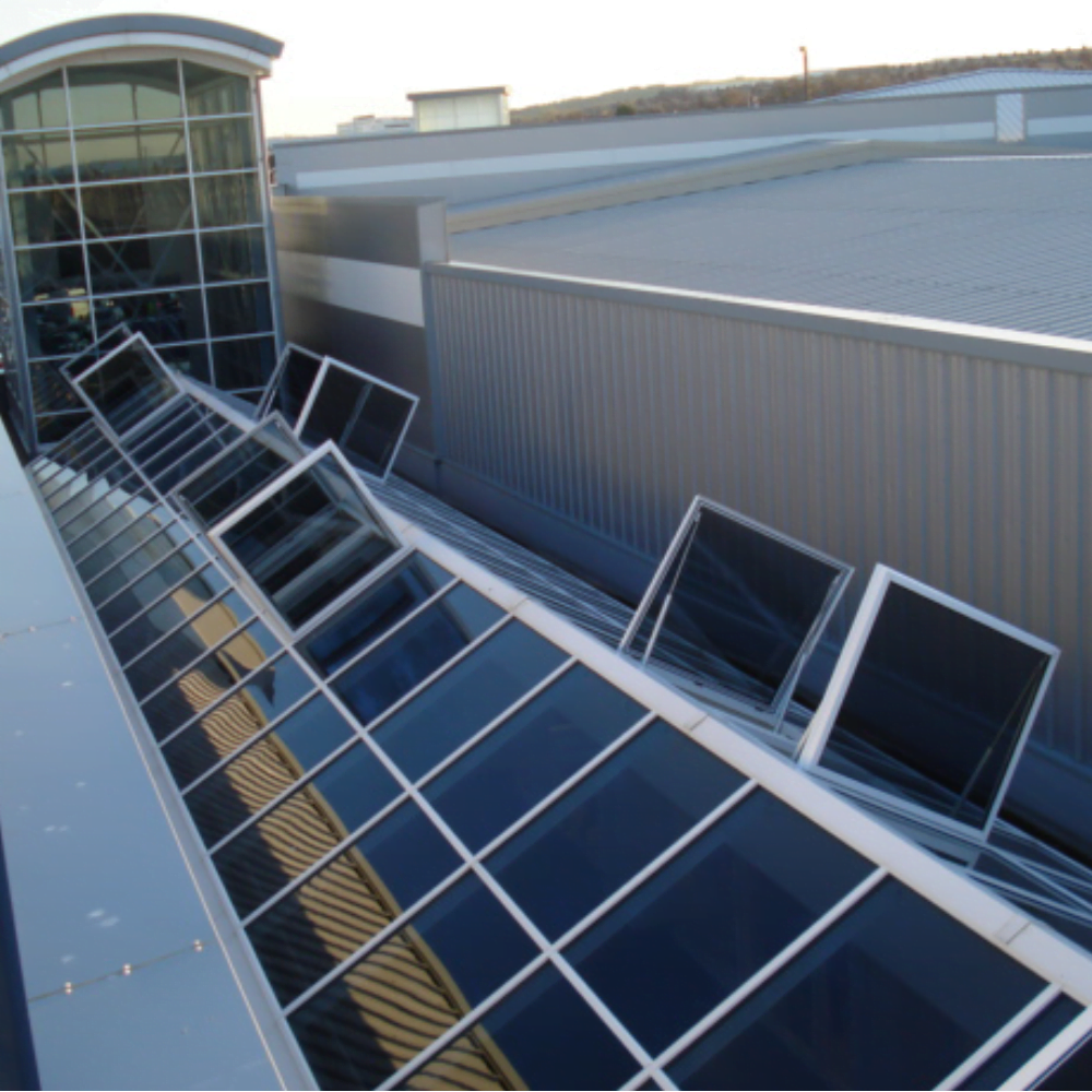 The Stirling AOV Casement Ventilator is available with insulated aluminium panel sheet, polycarbonate panel sheet, single glazing or double glazing. We can supply other glazing options on request up to 48mm thick glass. This creates the opportunity to diversify your smoke ventilator to suit any requirements.